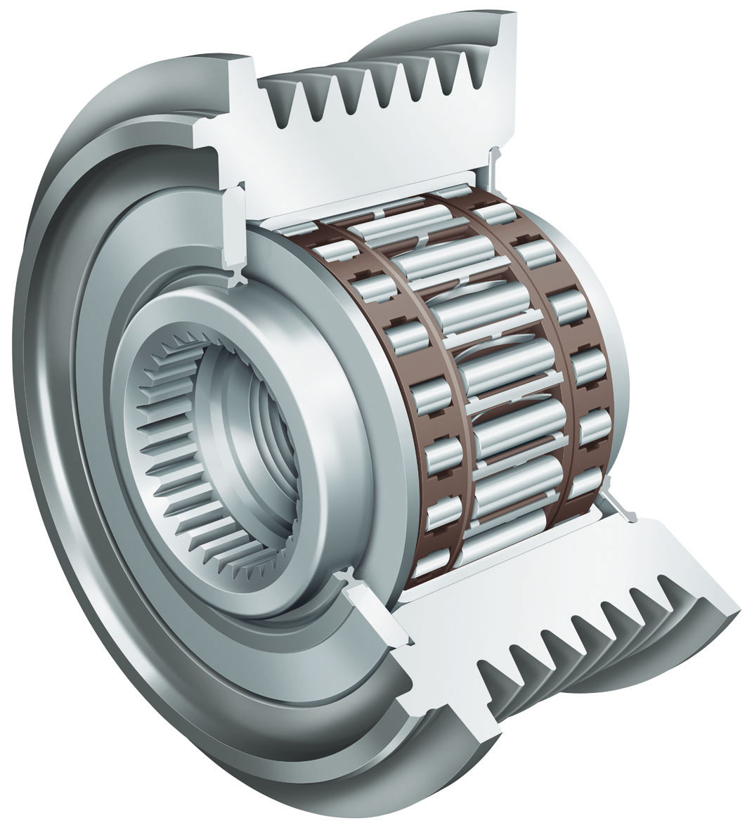沖壓外圈滾針離合器具有非常高轉換精度,這得益于每個(gè)滾針帶有獨立的簧片,從而保證軸,滾針和斜坡之間的持續接觸。由于其夾緊的滾針質(zhì)量輕且慣性力矩小,因此允許高的轉換頻率。